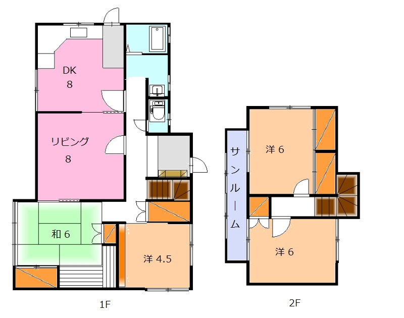 | 間取内訳 | 1F DK8、洋8、和6、洋4.5 2F 洋6、洋6 | ||